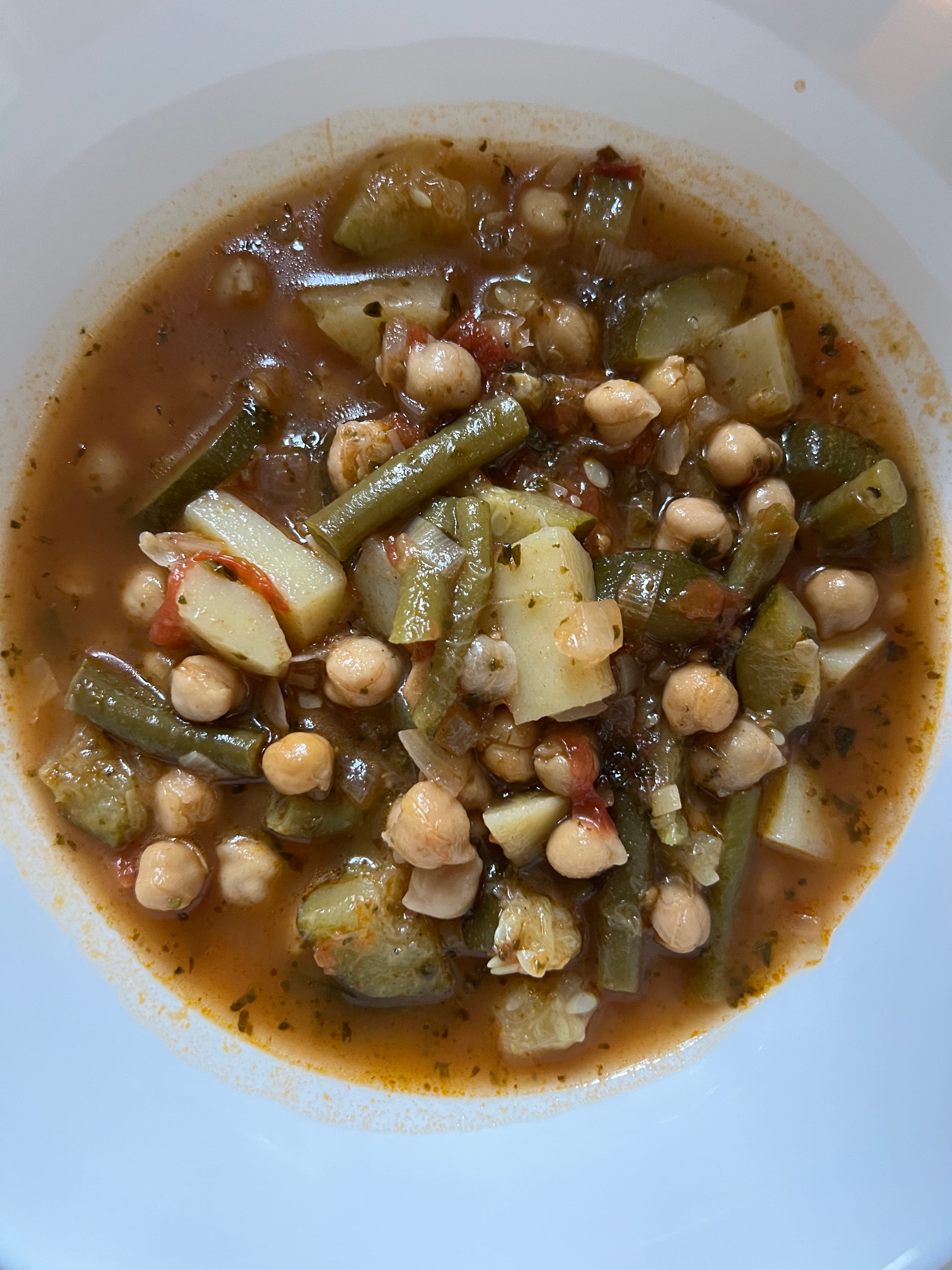 Here’s the recipe I followed roughly. Didn’t have pasta, so I didn’t use any. Grabbed a bottle of chickpeas from an Algerian grocer around the corner to replace the beans, in the spirit of pretending I live here.